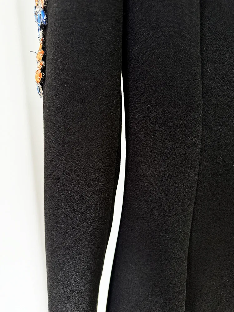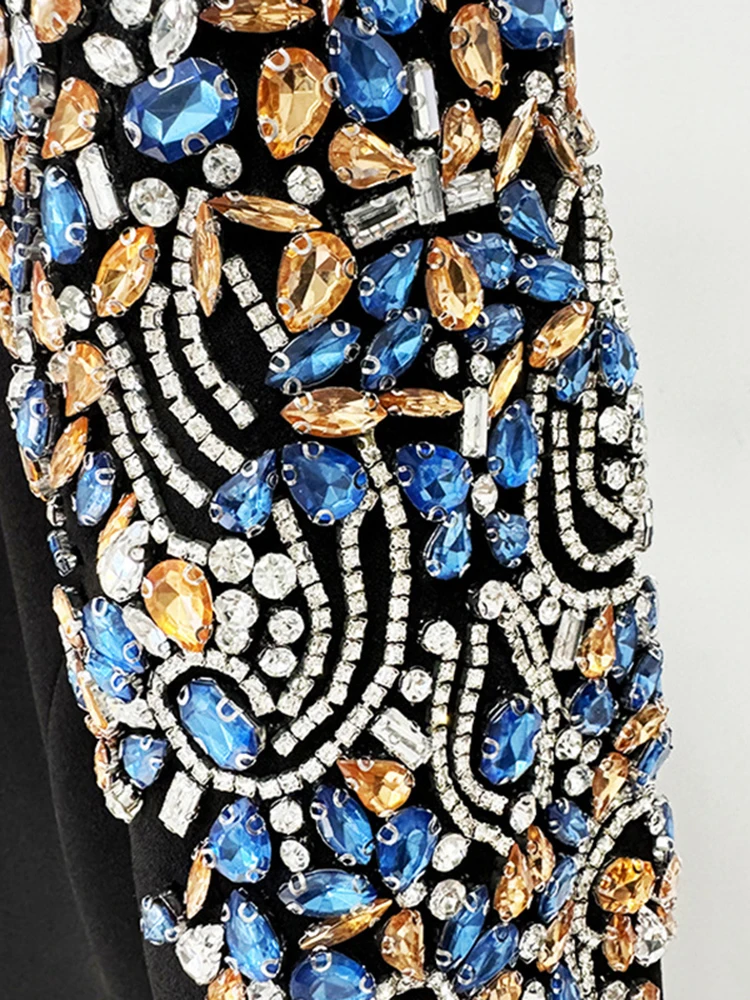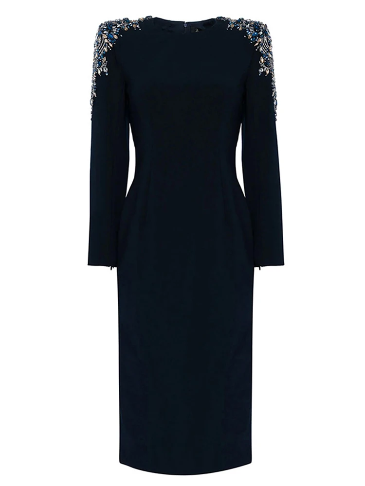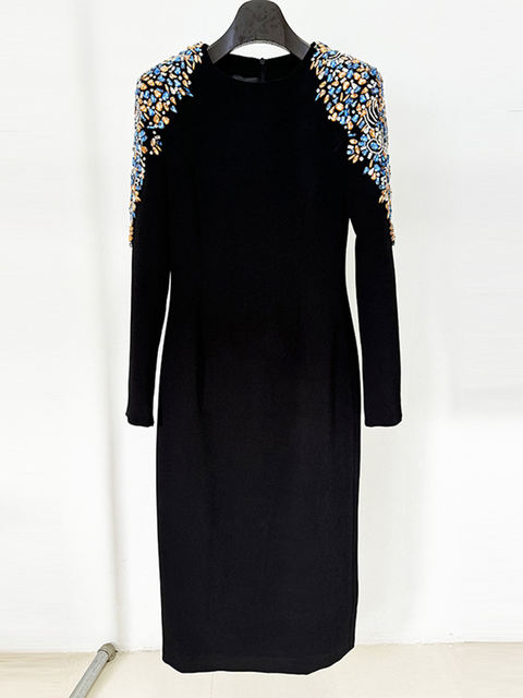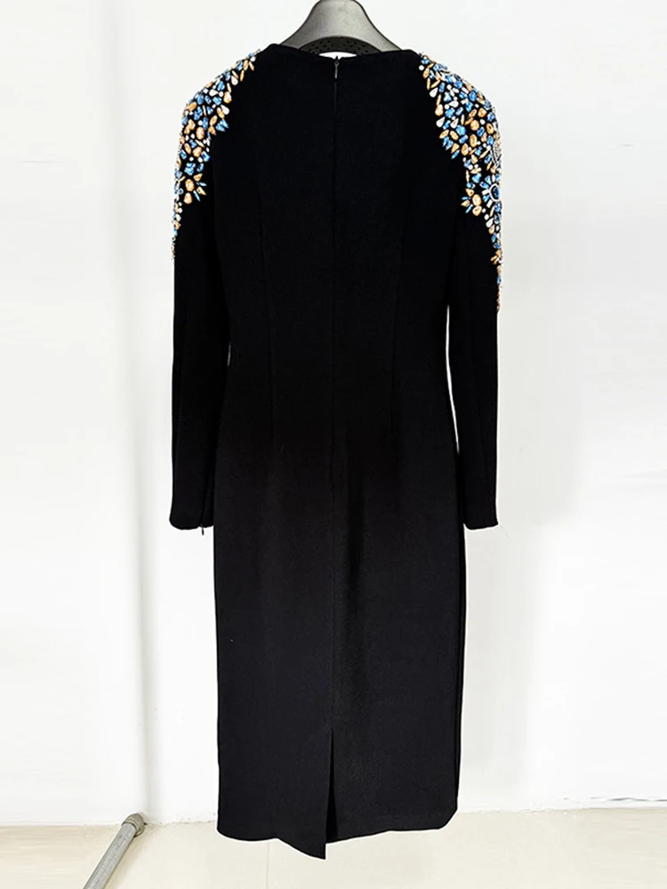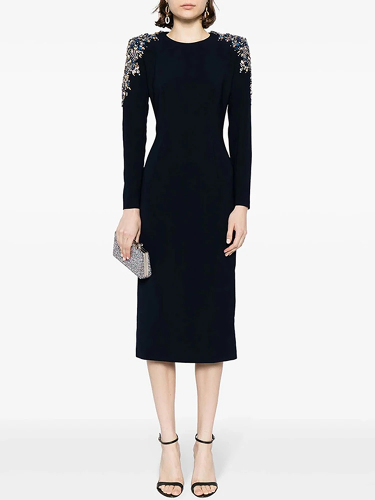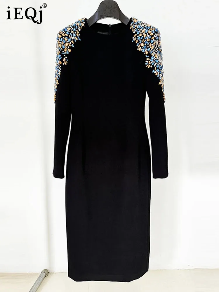 [IEQJ] Soild Diamonds Embriodered Fales Design Dresses For Women Round Neck